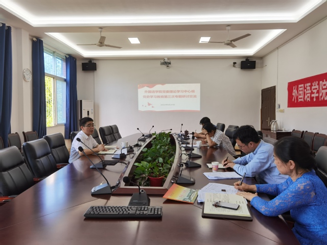 5月27日,外国语学院党委理论学习中心组开展党史学习教育第三次专题学习,重点围绕改革开放时期历史开展研讨交流,院党委书记胡永华主持学习。
