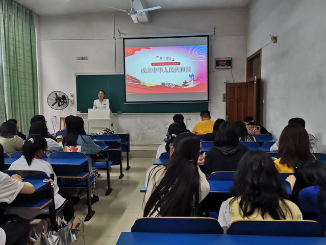 宣讲团成员分别从“建立中国共产党”、“成立中华人民共和国”、“推进改革开放和中国特色社会主义事业”三个专题,着力讲好党的故事、革命的故事、英雄的故事,以“干货”满满的PPT、深入人心的讲稿、喜闻乐见的宣讲方式进一步引导学院广大学子了解党的光辉历史、感悟党的初心使命、领会党的创新理论、体认党的精神谱系、传承党的红色基因。