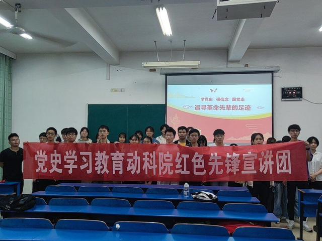 连日来,动科院红色先锋宣讲团深入学院各班级、学生组织开展“学党史、强信念、跟党走”主题宣讲活动,进一步把党史学习教育重点内容融入课堂、融入学生头脑,帮助学生扣好人生“第一粒扣子”,引导他们知史爱党、知史爱国。