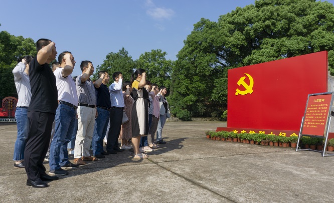 重温入党誓词,感悟入党初心。支部一行从方志敏大道出发,首先来到方志敏烈士陵园,全体同志共同瞻仰方志敏烈士塑像,重温入党誓词,为党员过集体政治生日,赠送政治生日贺卡,感悟入党初心。随后来到方志敏的故乡——弋阳县,开始一段追寻方志敏烈士初心足迹的旅程。