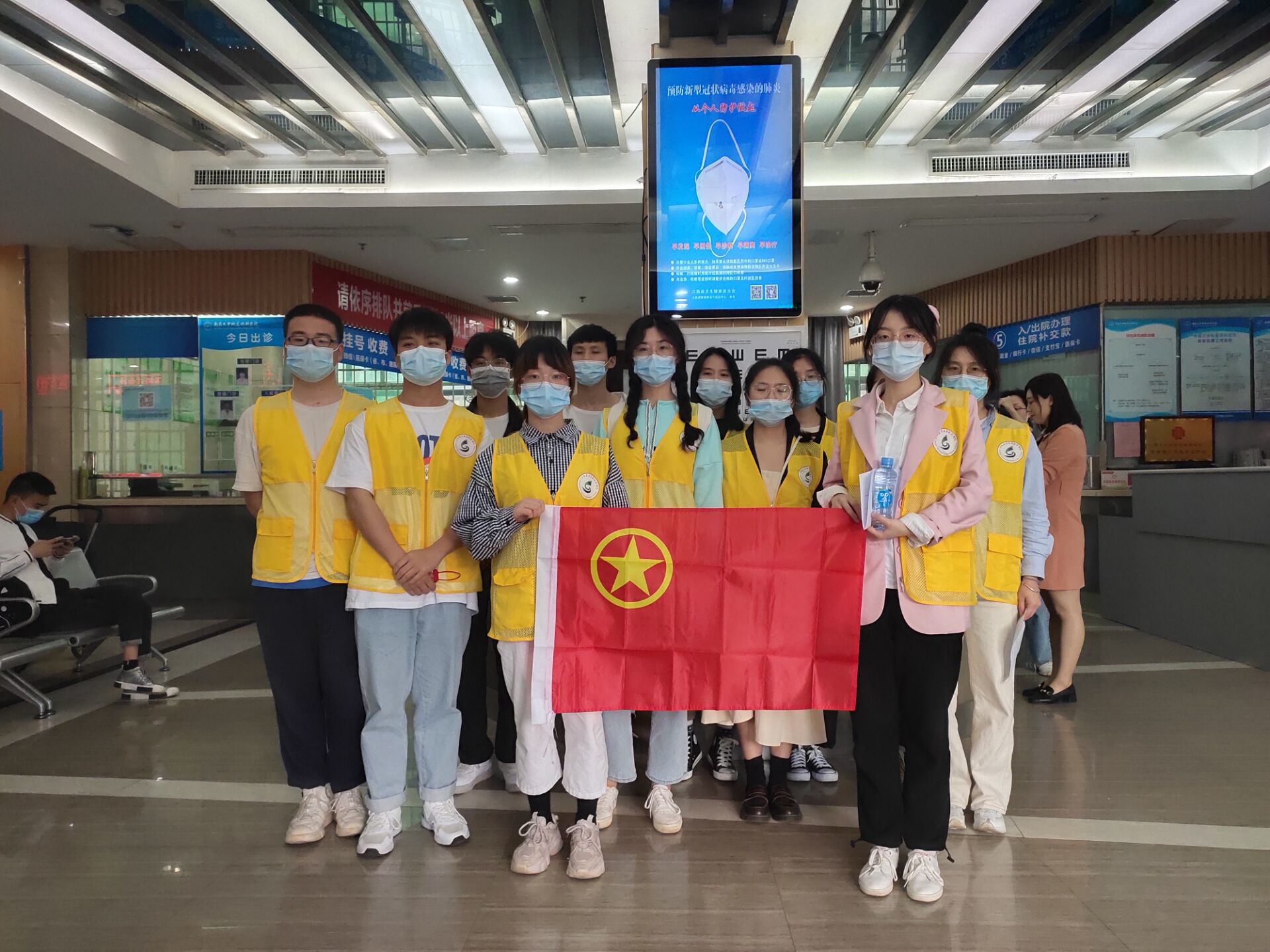 “您好,请扫码进入”“因为疫情防控的需要,请您理解”……五一期间,在南昌大学附属眼科医院挂号大厅、门急诊预检分诊等地随处可见一群穿着黄色马甲的青年志愿者。他们用文明的语言、亲和的态度,积极为患者提供咨询、导诊、挂号、分诊等贴心服务,有效缓解了门诊高峰期的就诊压力,改善了患者的就医体验。他们是欧冠软件学院的党员和团员青年志愿者们,这是软件学院开展“我为群众办实事,文明引导暖人心”志愿服务活动,切实推动党史学习教育成果转化成为群众服务的生动实践。