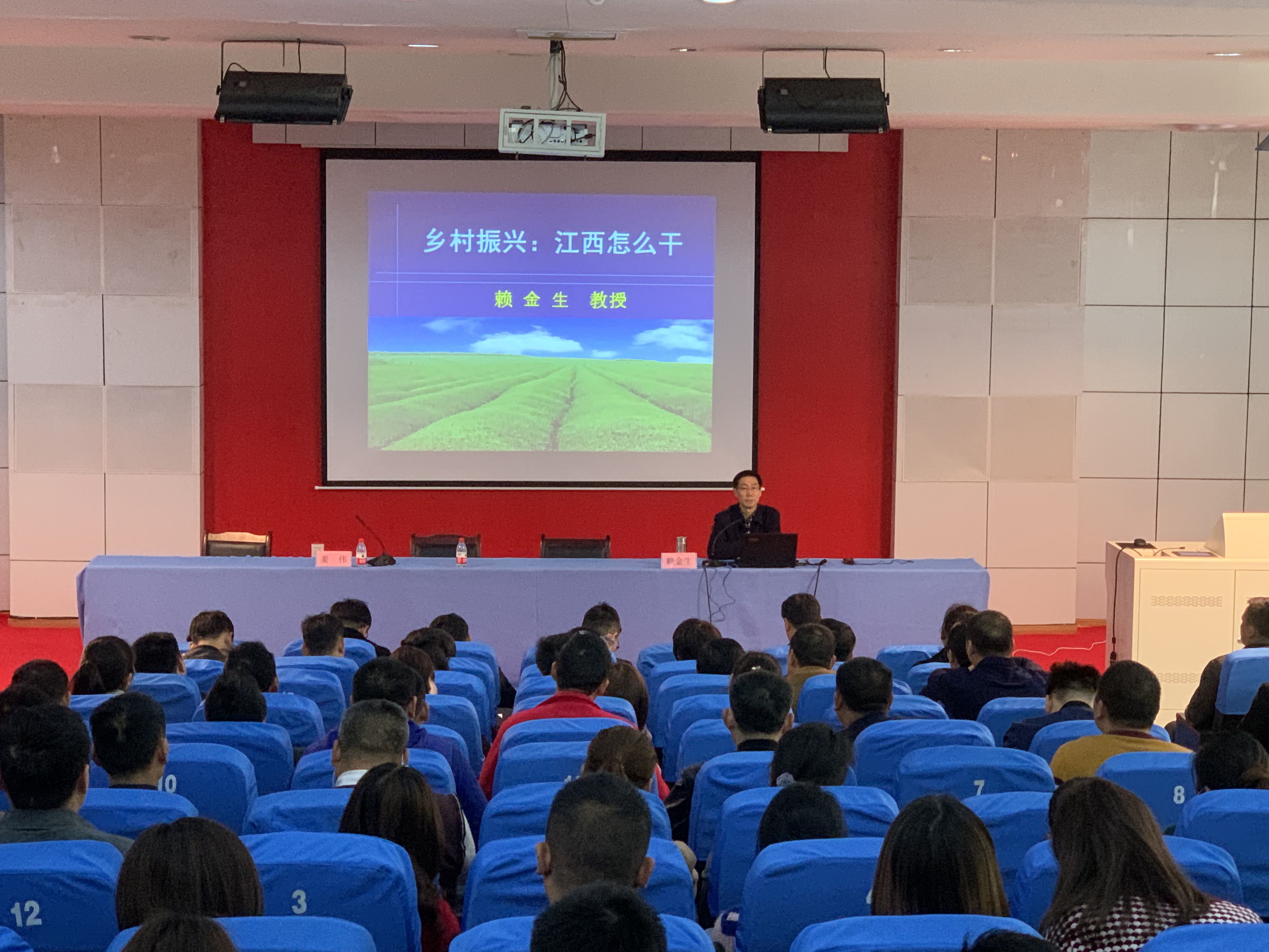4月10日上午,省农业农村厅一级巡视员赖金生教授走进欧冠“乡村振兴大讲堂”,为2021级“一村一名大学生工程”新学员作题为《乡村振兴:江西怎么干》的讲座。