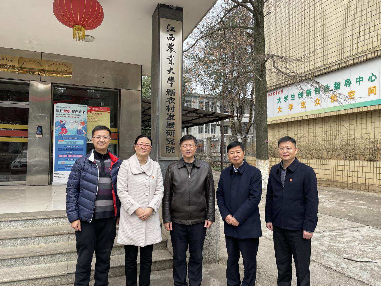 2月4日下午,省国资委二级巡视员李少华、省国资委党群工作处二级调研员蔡正孙、大成国资公司纪委书记王颖、大成国资公司党群工作部高级主管刘文一行来校走访慰问江西农大新农村发展研究院执行院长朱述斌教授。李少华巡视员感谢了朱述斌教授对省国资委工作的支持,希望农大专家继续为省国资委、大成国资公司的发展献计献策。
