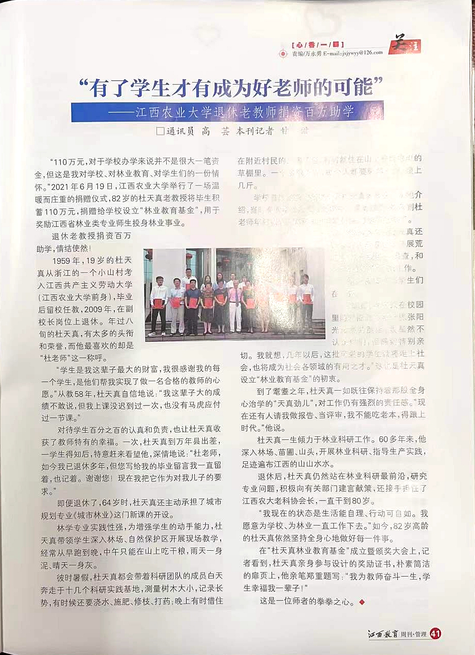 【江西教育期刊】有了学生才有成为好老师的可能——欧冠官方网站退休老教师捐资百万助学