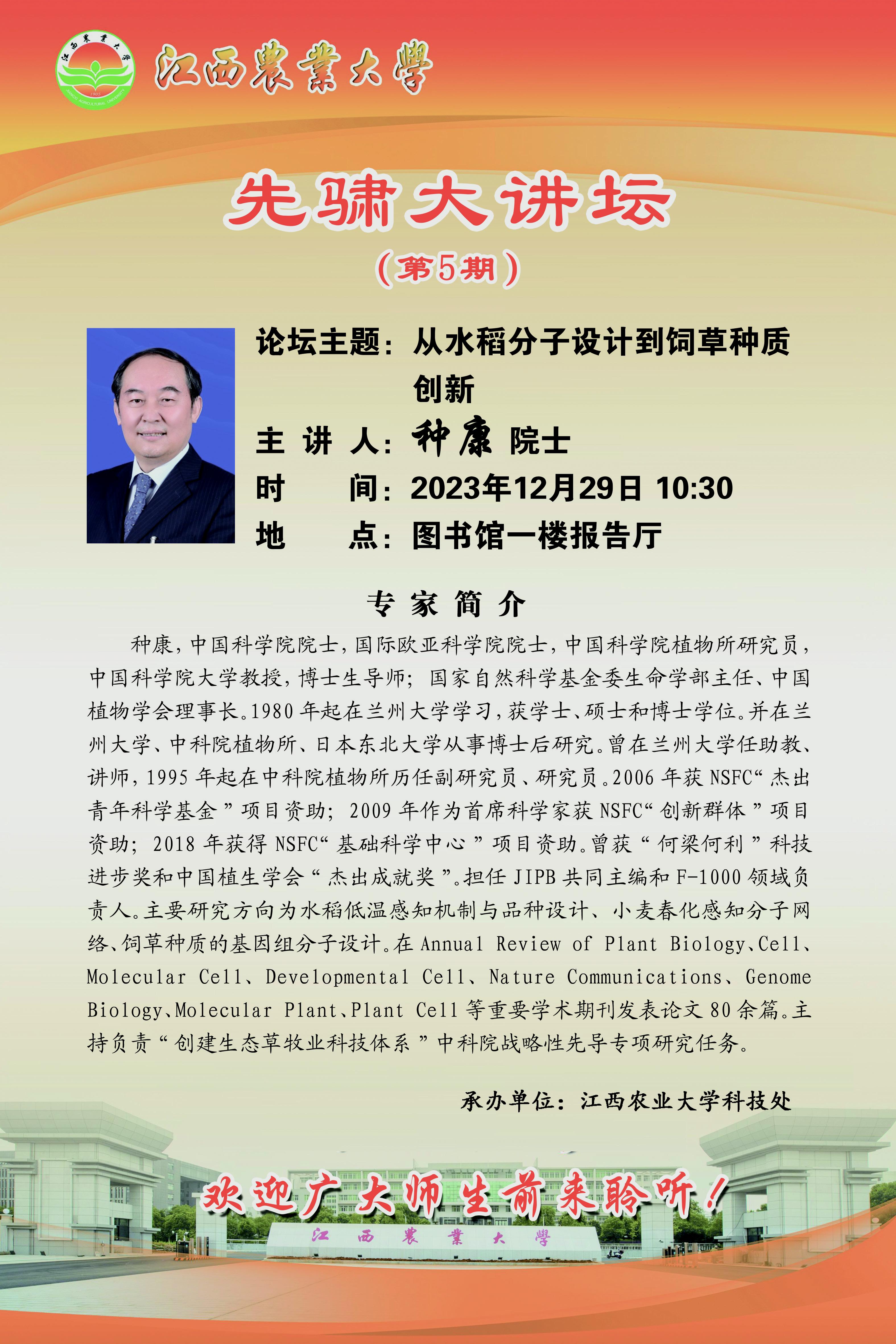 先骕大讲坛(第5期):从水稻分子设计到饲草种质创新