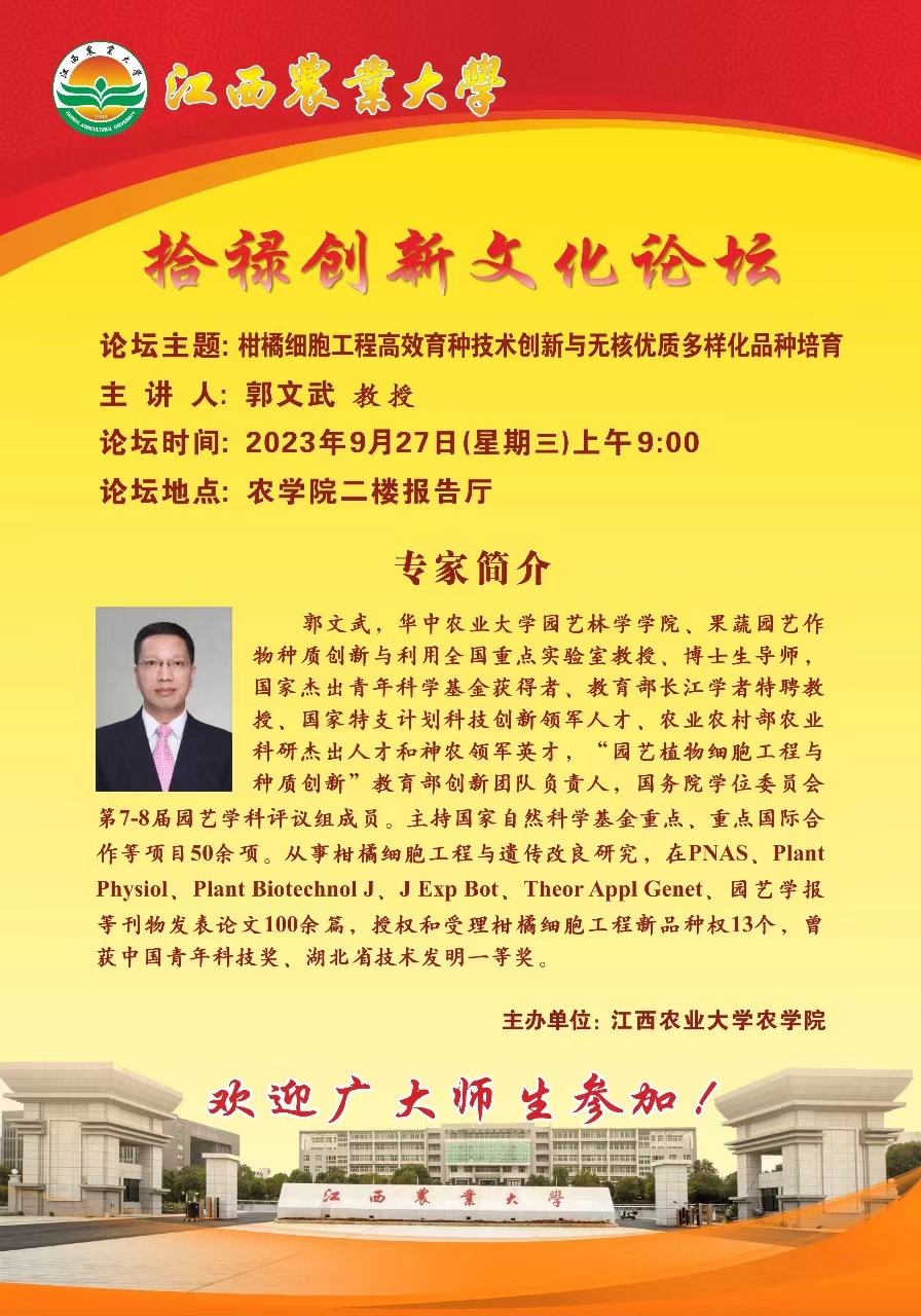 拾禄创新文化论坛:柑橘细胞工程高效育种技术创新与无核优质多样化品种培育