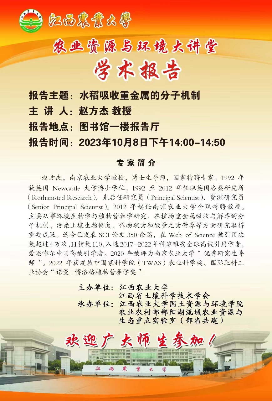 农业资源与环境大讲堂:水稻吸收重金属的分子机制