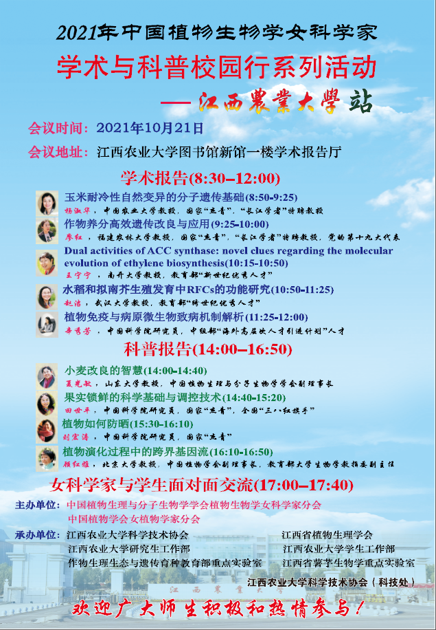 学术报告预告:2021年中国植物生物学女科学家学术与科普校园行系列活动—欧冠官方网站站