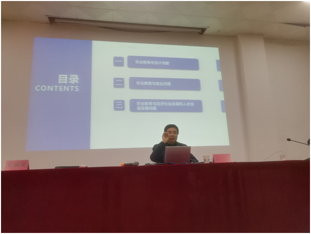 杨乐文解读了我国职业教育的萌生、发展和变革,以及黄炎培的职业教育思想的传承与发展,他结合自己多年的中等职业教育经历,深入阐述了职业教育与生计、职业教育与就业、职业教育与经济社会发展和人的全面发展等师生们关注的研究热点。整场报告内容紧贴现实,语言风趣幽默,富有内涵,有较强的理论深度,强化了研究生对我国大力发展职业教育的认识与理解,师生们深受鼓舞。