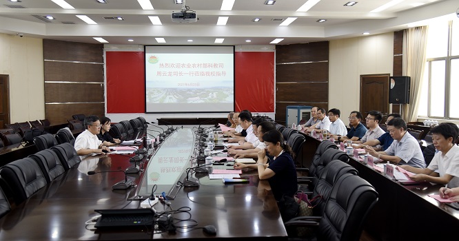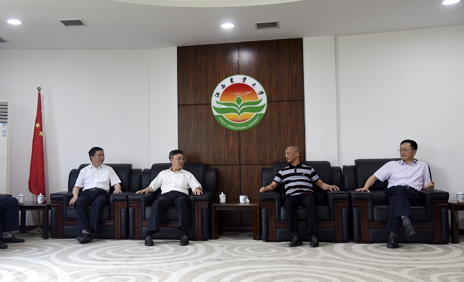 6月23日下午,农业农村部科技教育司司长周云龙一行来欧冠调研指导并主持召开座谈会。会前,校党委书记黄路生院士、校长赵小敏会见了周云龙一行。省农业农村厅党组成员吴国昌,校长赵小敏,副校长黄英金、曾志将,省农科院副院长余传源,省农业农村厅科教处、农业生态站以及欧冠科技处、发展规划研究中心、新农村发展研究院、国土学院、继续教育学院等单位负责人及国家现代农业产业技术系岗位专家参加了座谈会。
