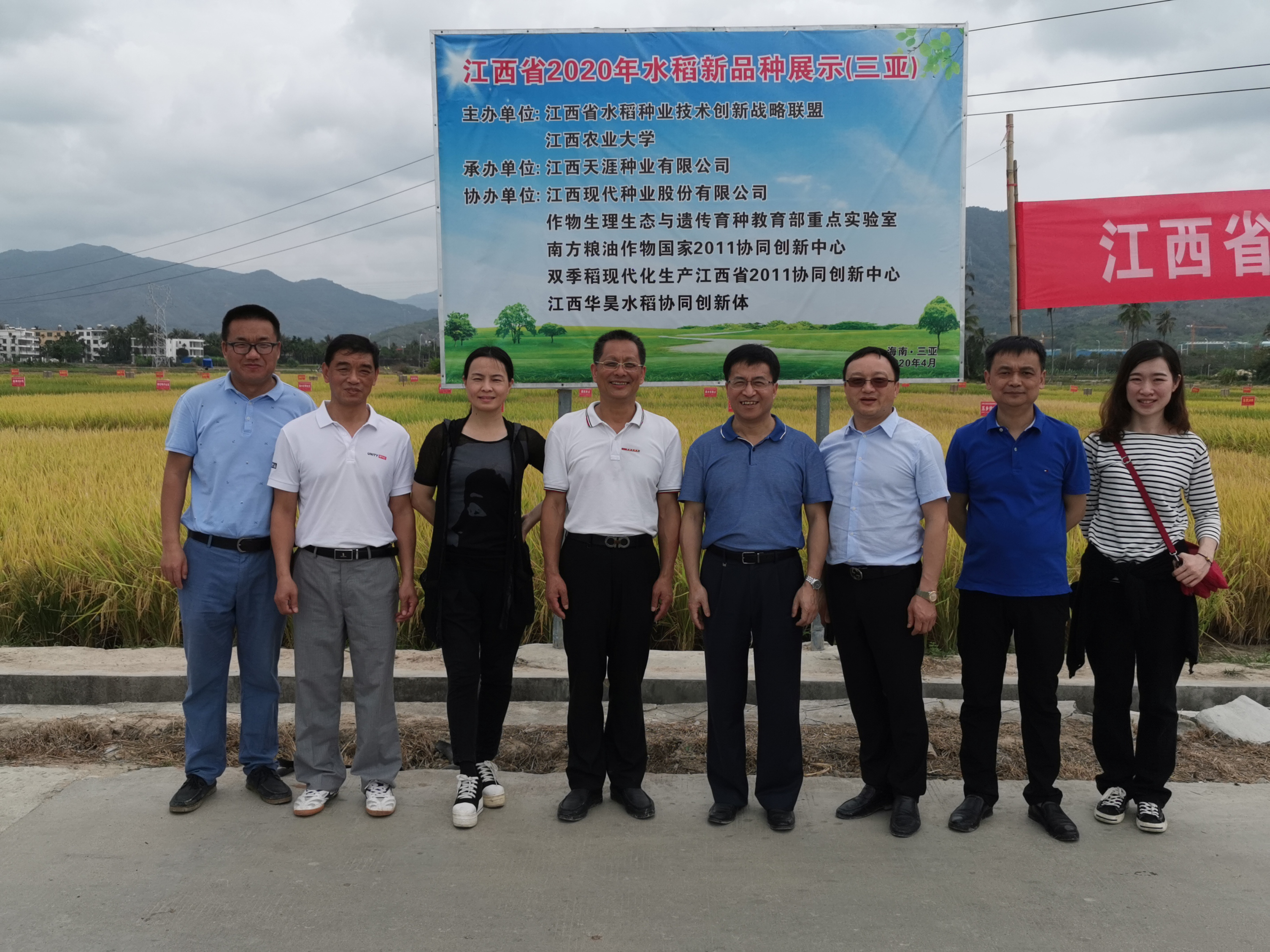 席宏一行参观了欧冠海南水稻南繁育种基地和2020年江西省水稻新品种展示会(海南)现场。席宏对欧冠在水稻新品种选育方面所做的工作给予了高度评价,同时对欧冠主持的江西省水稻种业创新战略联盟在资源共享、成果转化、合作交流等方面做得工作给予了高度肯定。最后,席宏要求欧冠以后在水稻育种生产中继续做好科技创新“排头兵”,为江西新时期农业发展作出更大贡献,并对江西省水稻种业创新战略联盟进一步加强产学研合作提出了新的期望和要求。