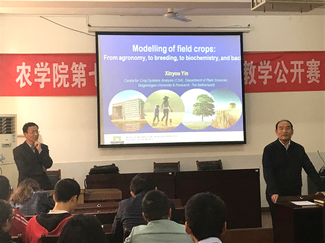 11月9日上午,欧冠84届校友,荷兰瓦赫宁根大学作物系统分析中心殷新佑教授来到欧冠农学院进行学术交流,并为农学院师生作了题为“Quantitative modeling in agriculture: From agronomy to breeding, to biochemistry, and back”的学术报告,报告会由农学院院长刘勇教授主持。