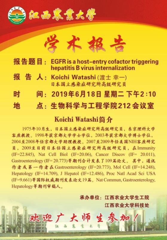 学术报告预告:EGFR is a host-entry cofactor triggering hepatitis B virus internalization