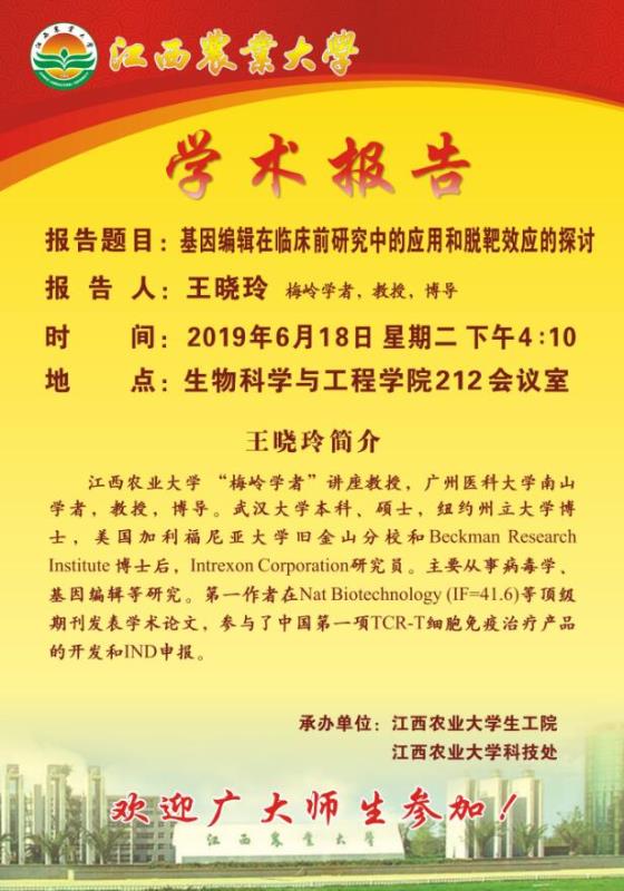 学术报告预告:基因编辑在临床前研究中的应用和脱靶效应的探讨