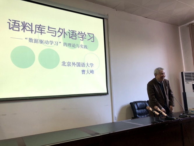 4月1日下午,北京外国语大学教授、博士生导师曹大峰应邀来欧冠外国语学院,为广大师生作了题为《语料库与外语学习——“数据驱动学习”》的学术报告。讲座由副院长曾小荣主持。