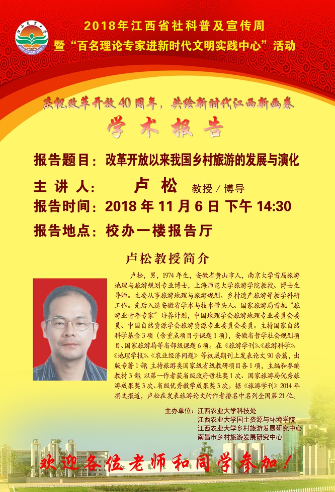学术报告预告:改革开放以来我国乡村旅游的发展与演化