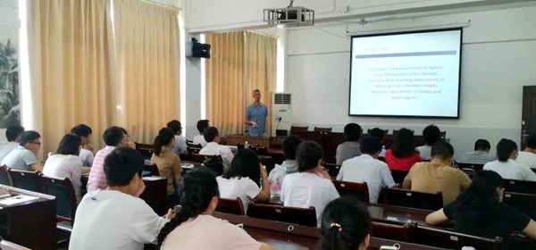 van Groenigen博士首先为欧冠师生做了题为“Soil carbon dynamics under future climate conditions: what do field experiments tell us?”的学术报告。van Groenigen博士从数据分析方法、大气二氧化碳浓度升高和气候变暖对土壤有机碳库的影响等方面进行了生动的阐述。会后,van Groenigen博士与师生进行了热烈讨论和互动交流。