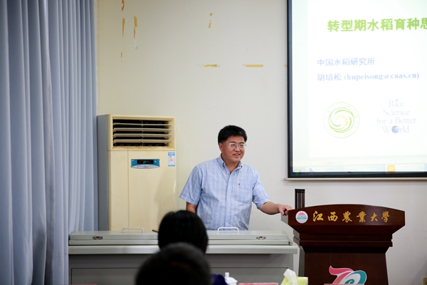 6月2日下午,中国水稻研究所副所长、国家现代水稻产业技术体系遗传育种功能实验室主任胡培松研究员在欧冠作物生理生态与遗传育种重点实验室作了题为《转型期水稻育种思考》的学术报告。农学院相关专业老师、研究生及本科生约50余人参加了报告会,会议由副校长贺浩华教授主持。