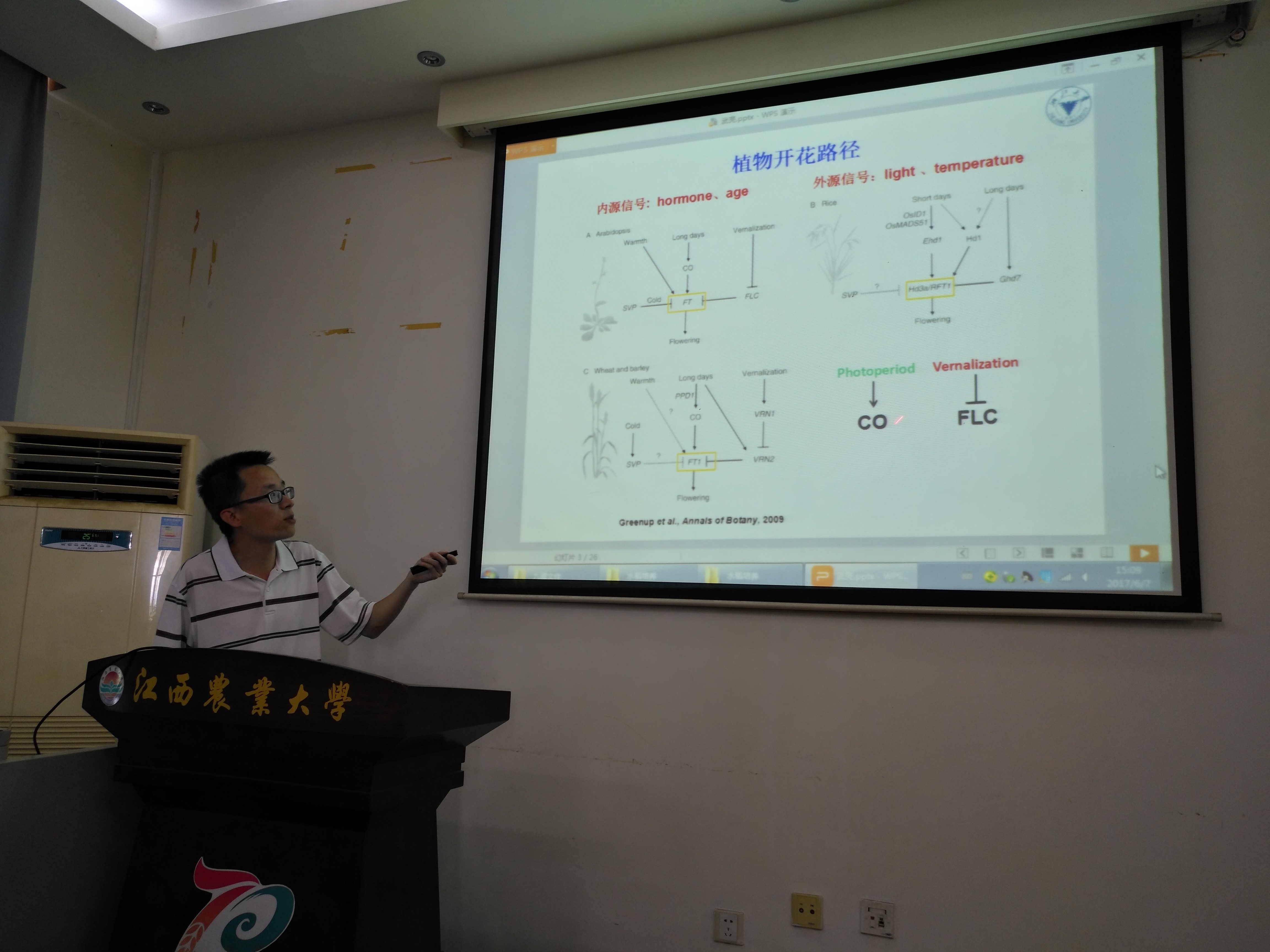 6月7日下午,浙江大学农业与生物技术学院武亮研究员在作物生理生态与遗传育种重点实验室作题为《麦类作物开花调控的分子机制》的学术报告。报告由农学院副院长朱昌兰教授主持,农学院相关专业师生聆听报告。