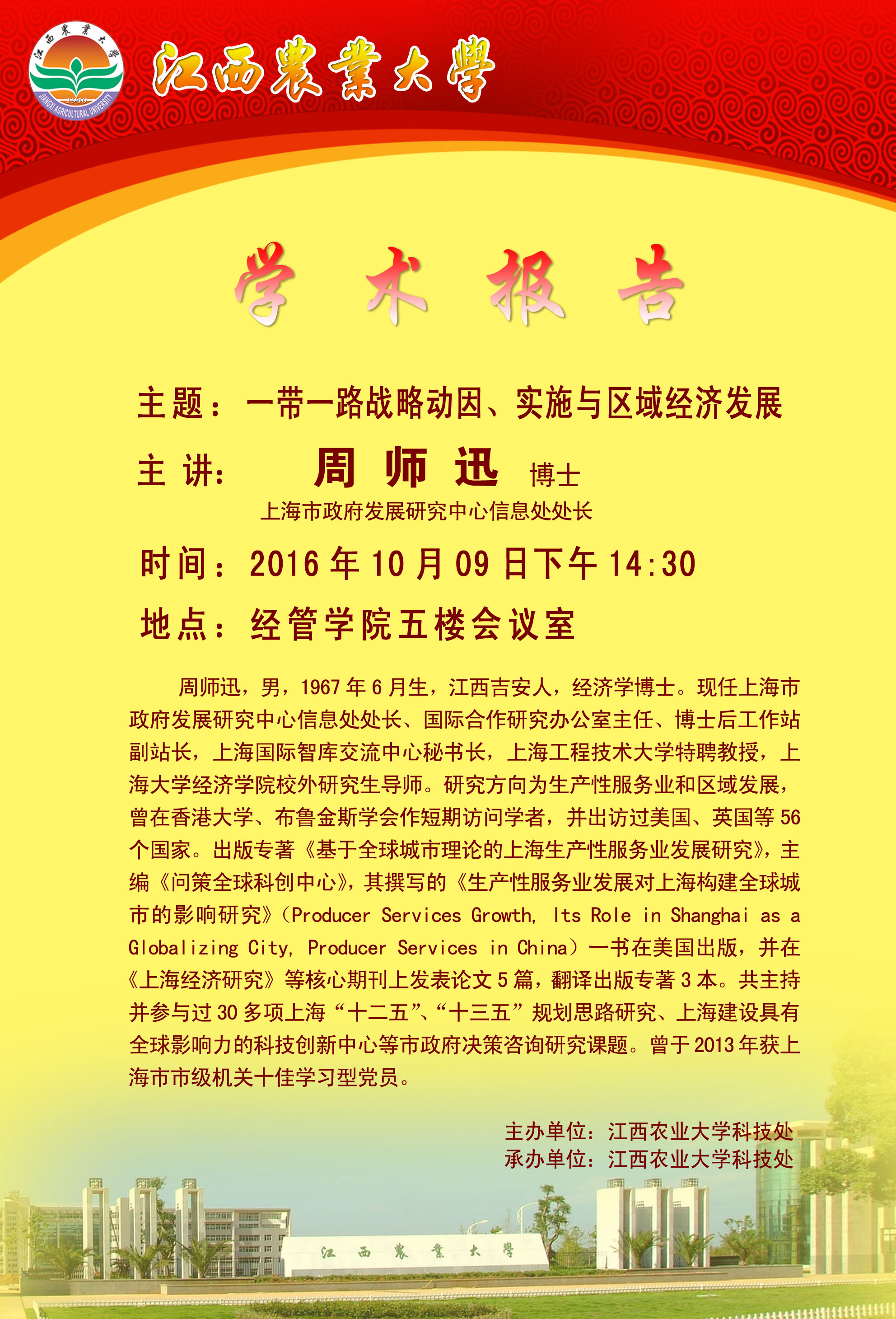 学术报告海报:一带一路战略动因、实施与区域经济发展