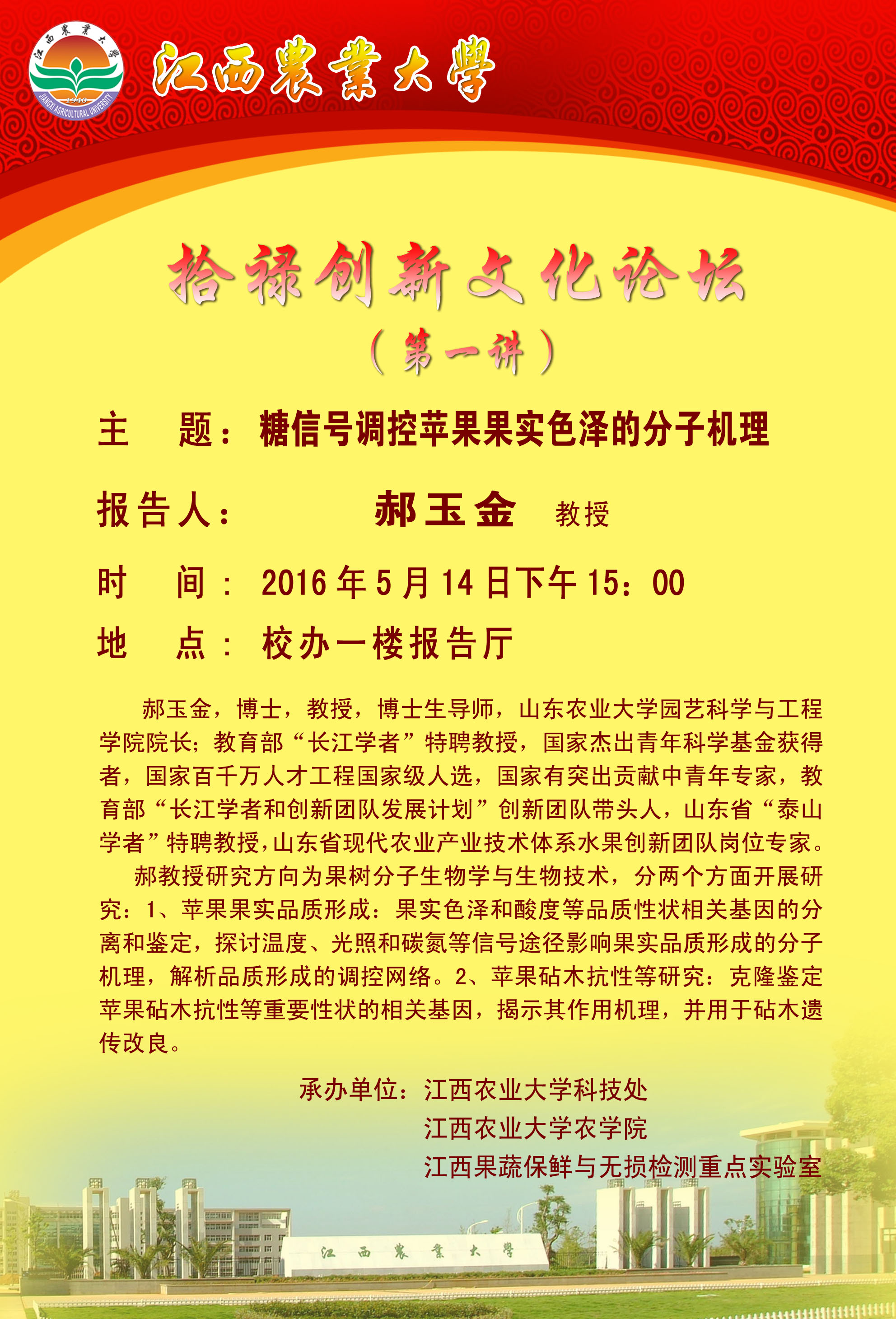 拾禄创新文化论坛(第一讲)海报:糖信号调控苹果果实色泽的分子机理