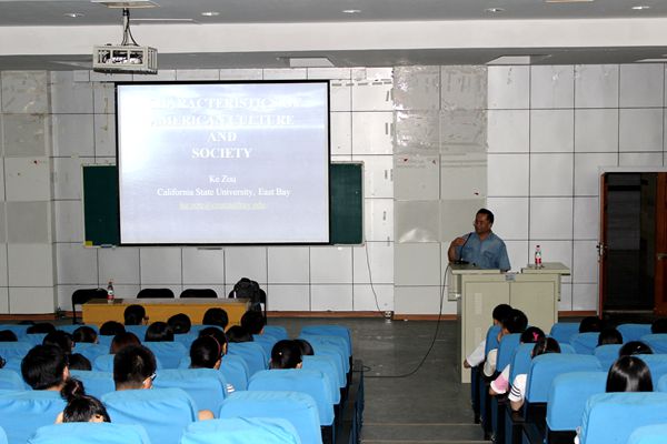 9月13日下午,邹科教授应邀给外国语学院师生带来了一场名为“美国社会与文化”的学术讲座。讲座介绍了美国文化和社会的特征,并针对怎样与美国人建立各种层次的社会关系,以便迅速融入美国社会和在美国社会中定位等问题作出解答。