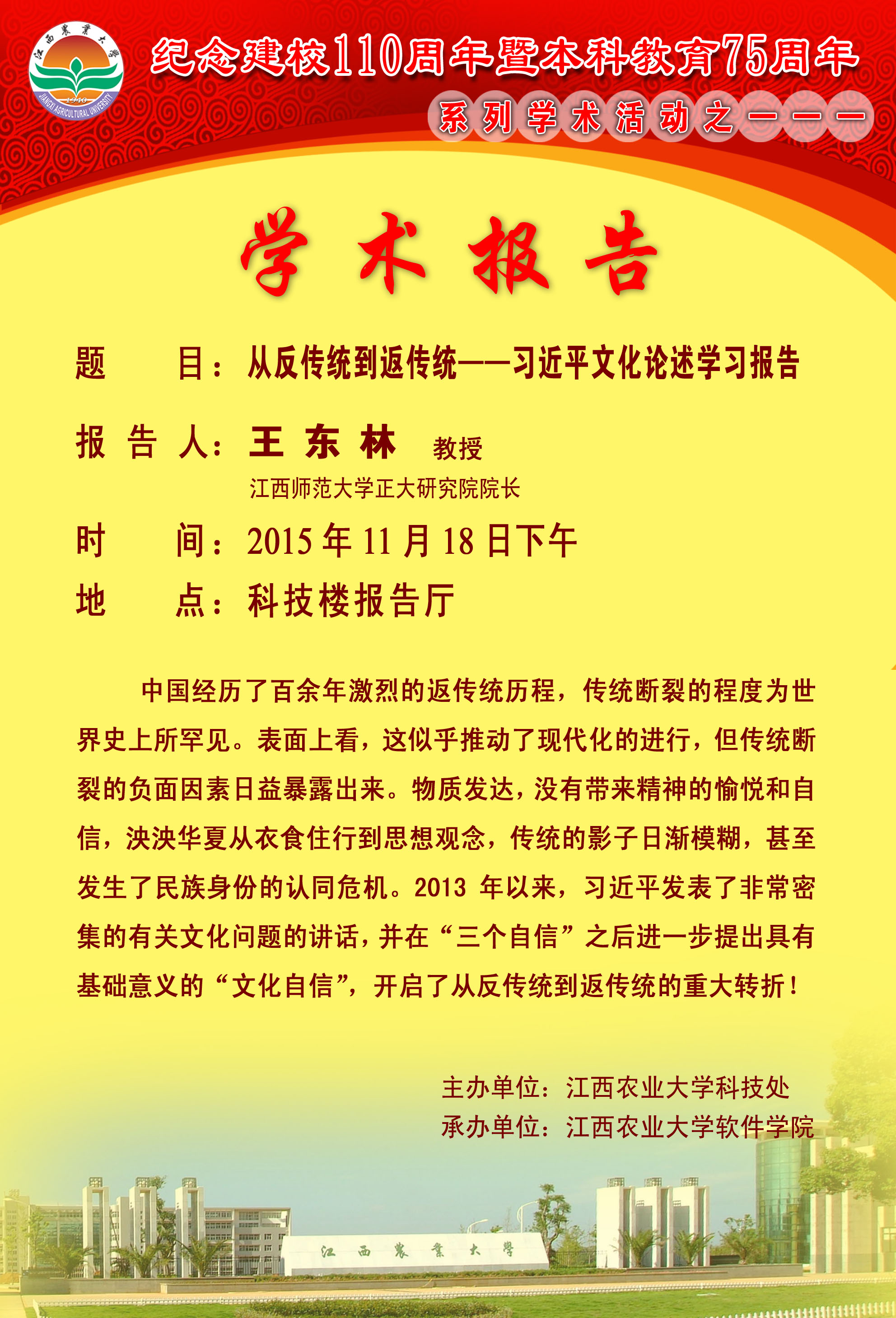学术报告海报:从反传统到返传统——习近平文化论述学习报告