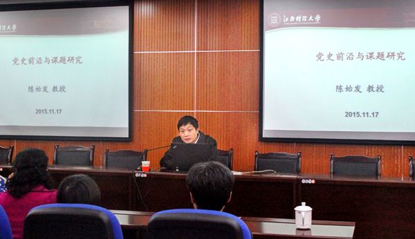 11月17日下午,应欧冠政治学院邀请,江西财经大学马克思主义学院院长、博士生导师陈始发教授来校为师生作题为《党史前沿与课题研究》的学术报告。