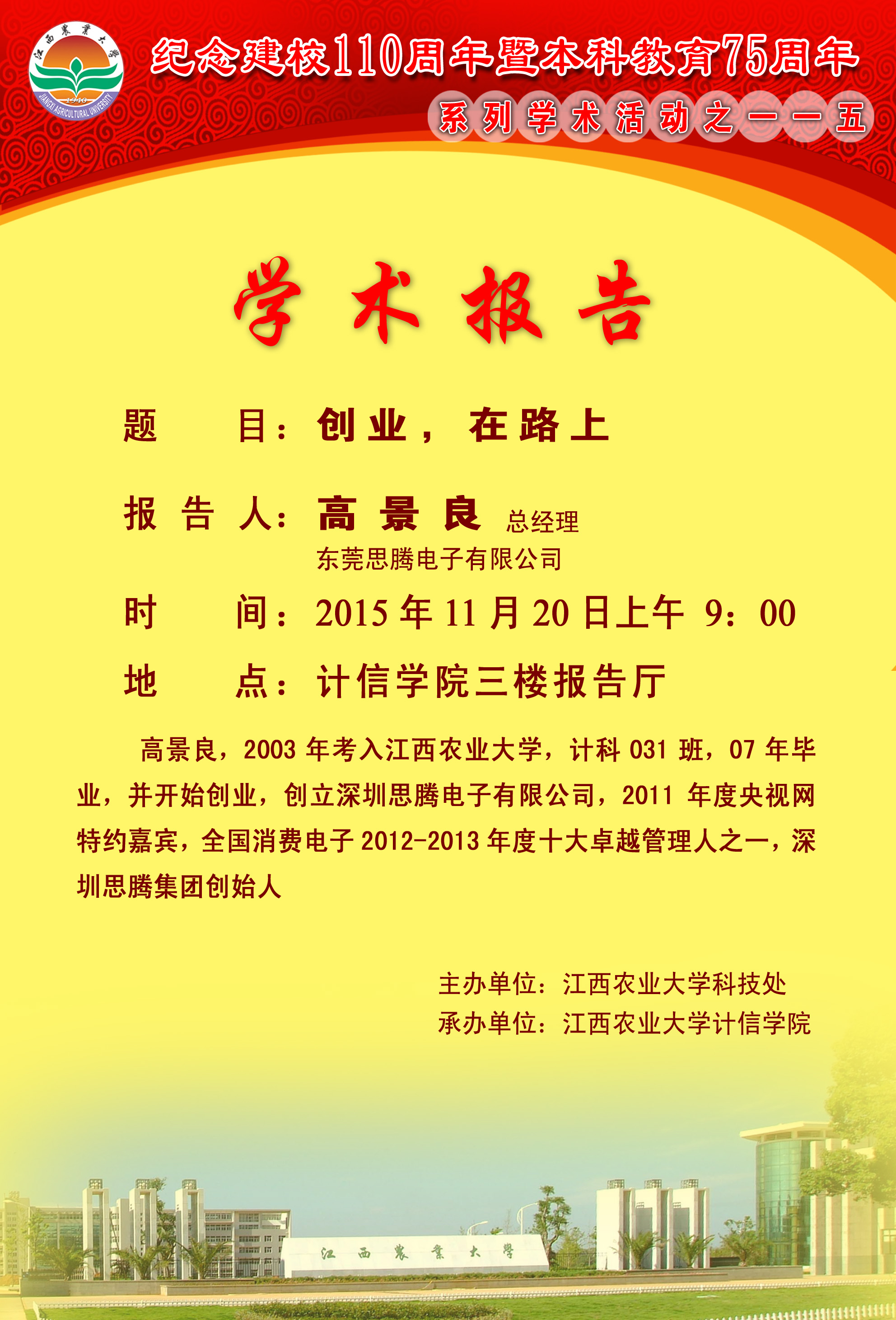学术报告海报:创业,在路上