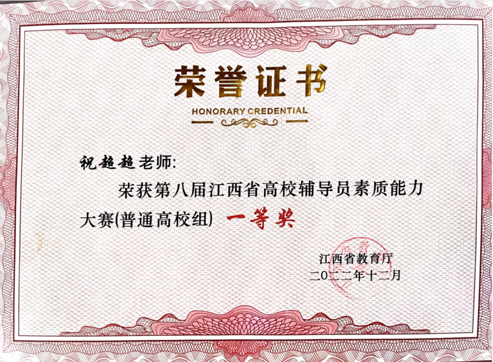 学校还组建了一批辅导员学习专业团队,成立了6个辅导员工作室,近五年,获批江西省高校辅导员“名师工作室”1个;3人获评江西省“最美辅导员”荣誉称号,2人获江西省“最美辅导员”提名奖。在江西省辅导员素质能力大赛中,荣获一等奖2项,二等奖1项,三等奖1项;获批教育部人文社会科学研究专项任务项目(高校辅导员研究)立项2项、教育部高校思想政治工作精品项目1项、江西省高校思想政治工作精品项目3项、江西省人文社科研究辅导员专项9项;在江西省高校思想政治工作优秀论文和优秀案例征集活动中,获一等奖6项,二等奖5项,三等奖4项。