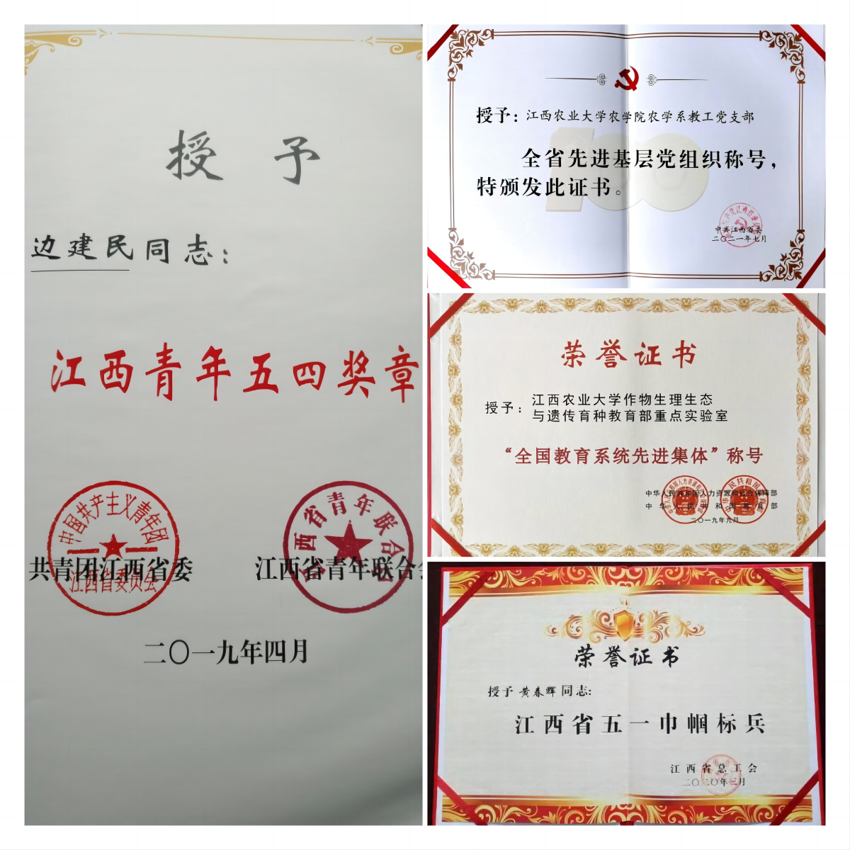 农学院领导班子连续5年获评欧冠官方网站优秀领导班子,农学系党支部入选第二批新时代高校党建示范创建和质量创优“全国党建工作样板支部”创建单位,2022年上半年已顺利通过验收,该支部获评2021年“全省先进基层党组织”称号,并被省教育厅推荐参评教育部“双带头人”教师党支部书记工作室。农学院教师荣获“江西省五四青年”奖章、“新时代赣鄱先锋”、“新时代学生心中的好老师”、“五一巾帼标兵”、“江西省三八红旗手”、“江西省巾帼文明岗”“感动江西教育年度人物”、“江西省乡村振兴青年先锋”、“江西省优秀科技特派员”、“全国南繁工作先进个人”、“全省粮食工作先进个人”、“江西省农业、农村工作先进个人”、“全省高校优秀共产党员”等省级及以上荣誉和称号40余人次。作物遗传育种团队荣获江西省委教育工委“工人先锋号”称号,作物生理生态与遗传育种教育部重点实验室荣获“全国教育系统先进集体”称号。