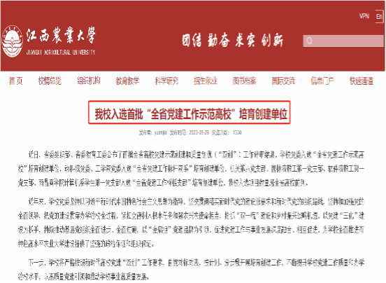 通过不懈努力,学校党建“三化”建设取得明显成效。召开了全省高校首次基层党建“三化”建设观摩推进会,建成了全省高校首个党建信息化指挥平台,调整优化了45个基层党组织,实现了专任教师党支部书记“双带头人”和全校标准化党员活动室“两个全覆盖”。“金扁担”党建品牌影响力辐射力不断增强。南昌大学等30多家省内外单位先后来校学习借鉴品牌创建经验,动科院“12365”、工学院“匠心琢玉”、农学院“铁肩膀”党建子品牌创新发展的格局初步形成。党建“双创”攻坚行动进展顺利。学校党委获批成为全省首批党建工作“示范高校”培育创建单位,累计获批全国党建工作“样板支部”培育创建单位4个,全省党建工作“标杆院系”培育创建单位2个、“样板支部”培育创建单位4个。此外,实化基层党组织书记抓党建述职评议考核工作、深化“党建联建共建”活动、固化半年党建工作督查机制,有力推动履行“第一责任”、践行“第一使命”,党组织的政治功能和组织功能不断增强。