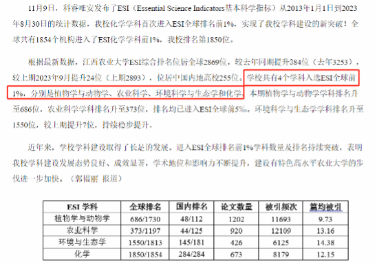 第三次党代会以来,广大党员靠前站、主动上、带头干,全校上下齐心协力、绵绵用力、持续努力,学校事业发展迎来翻天覆地的变化,取得了系列成就。科学研究有新的重大进展,在国际著名学术期刊《Nature》(《自然》)发表了迄今为止江西省和中国畜牧学领域的首篇研究长文;斩获了江西省科学技术进步奖特等奖;推出了江西省1999年至今24年来国家审定的第一个畜禽新品种。人才引育有新的重大突破,全职引进中国科学院院士、国家优青各1名;自主培养特殊支持计划青年拔尖人才1名;引进培育国务院政府特殊津贴专家及省“双千计划”人才、“赣鄱俊才支持计划”人才等多名。教育教学有新的重大收获,1项教学成果荣获全国教学成果奖二等奖;1个教学团队入选“黄大年式”教学团队;1个教师团队荣获全国高校教师教学创新大赛一等奖;本科生考研升学率逐年升高2023年达到34.27%。学科发展有新的重大提升,4个学科进入ESI全球前1%;4个“十三五”省一流学科继续入选“十四五”省一流学科且在全国第五轮学科评估中提档升级;新增博士后流动站3个。社会服务有新的重大平台,继续实施“一村一名大学生”工程、科技特派团;打造科技小院等新模式,打通科技服务“最后一公里”。校园治理有新的重大改善,方志敏隧道建成通车、南北校区连成一体;校中“三家村”完成历史性整体搬迁;“老旧小区”改造一期工程顺利完成、二期工程全面推进。