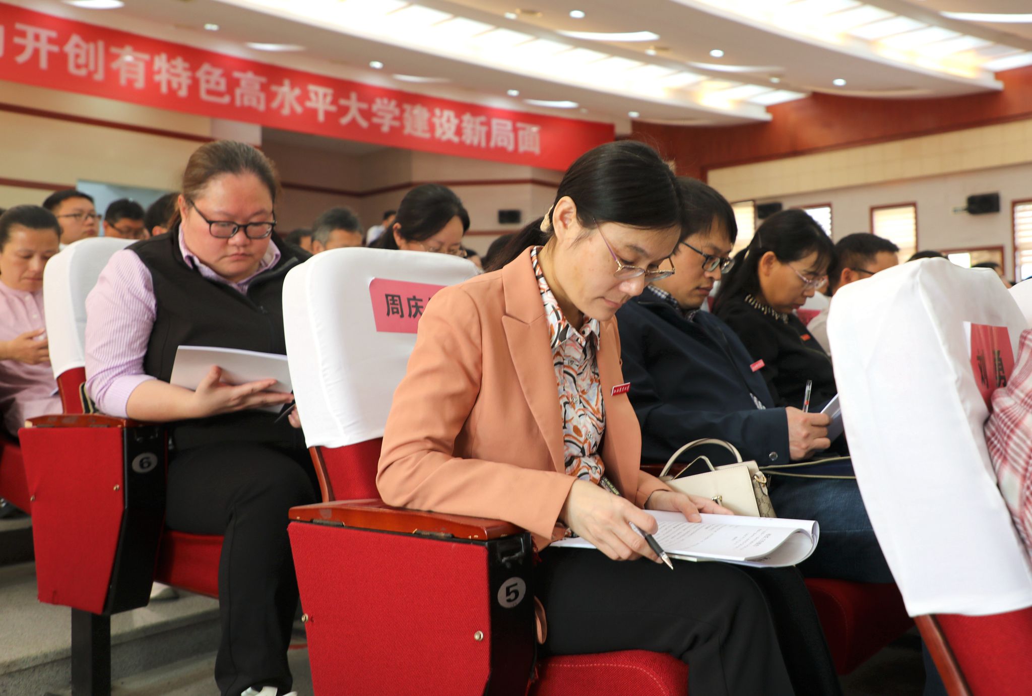 黄路生在闭幕式上发表讲话,从党纪学习教育扎实开展、党建固本强基持续推进、立德树人工程深化实施、党管干部人才坚实有力、强农兴农优势显著提升、民生福祉工程深入人心等六个方面,充分肯定了2024年的工作成绩。就抓实抓细2025年重点任务,黄路生提出四点要求:一是深入学习抓落实。要学习新思想提高思想认识,坚持用习近平新时代中国特色社会主义思想武装头脑、坚定信念、引领行动;学习新知识提升本领能力,把学习当做一种兴趣爱好、一种生活方式、一种行为习惯,树立学习的态度、坚持学习的行动。二是对标政治抓落实。要扎实推进党的建设,持续擦亮“金扁担”党建品牌,加大党建“双创”攻坚行动力度,推进党建与业务工作深度融合;压实意识形态责任,引导师生对学校工作形成正面认识,引导师生敢于主动发声、正确发声;加强立德树人,持续加强思政课程和课程思政建设,引导青年大学生坚决听党话、跟党走。三是聚焦重点抓落实。要扎实编制“十五五”规划,坚持底数要清、标杆要明、措施要实,确保学校总体规划、专项规划和学院规划编制更加科学;扎实推进学科建设,持续推动一流学科建设、专业建设、博士点建设;扎实推进师资队伍建设,细化高层次人才引育措施,不断推动国家级人才、省级人才引进培育工作取得新成效;扎实做好民生工程,加快推进既有住宅加装电梯、学生宿舍改造、便民服务设施建设等重大民生工程建设,不断改善办学条件;扎实办好120周年校庆,按照校庆工作方案、任务分解、责任分工、时间节点,推进各项工作进展。四是改进作风抓落实。要牢固树立作风建设永远在路上的思想认识,完善一体推进不敢腐、不能腐、不想腐工作机制;扎实开展深入贯彻中央八项规定精神学习教育,确保学有质量、查有力度、改有成效;坚持调查研究,努力在调查研究中发现问题、找到办法、推动工作。