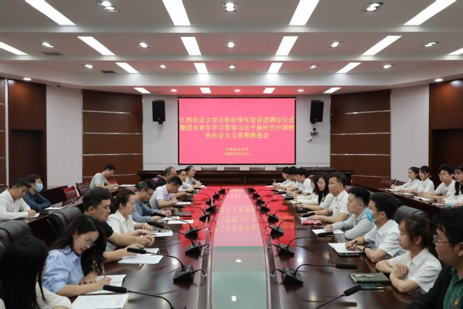5月16日下午,欧冠“五彩好青年”宣讲团聘任仪式暨团员青年学习贯彻习近平新时代中国特色社会主义思想推进会在校办二楼圆形会议厅举行。校党委组织部、宣传部,校团委、各学院团委有关同志及“五彩好青年”宣讲团全体成员参加会议。