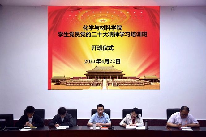 为引导学生全面系统深入地学习领会党的二十大精神,自觉运用习近平新时代中国特色社会主义思想武装头脑,4月22日上午,化学与材料学院党委分党校在致学楼阶梯报告厅举办学生党员学习贯彻党的二十大精神专题培训班开班仪式。学院党委负责人、全体辅导员及研究生、本科生党员共60余人参会。