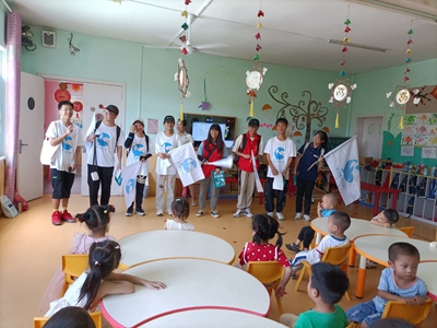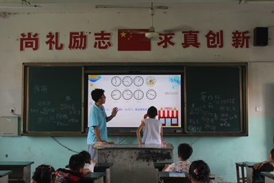 连续15年为当地贫困留守儿童开展爱心支教活动的外语院暑期三下乡志愿服务营队,今年再次来到南昌县塘南镇。志愿者们招收一至六年级留守小学生120余人,他们发挥专业特色,开设“朗读者,塘南之声 ” “Go for it”“follow me ”“数字王国”等专业课堂,为农民工子女及留守儿童带去关爱。