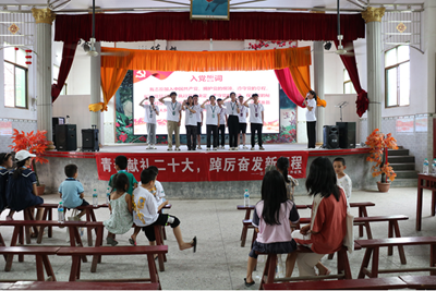 7月2日,南昌市高新区麻丘镇厚溪村村民活动中心传来阵阵嘹亮的歌声,化材学院联合厚溪村开展了以“青春献礼二十大·党史红歌遍田野”为主题的暑期“三下乡”社会实践活动。小朋友们走上舞台,讲述党史故事,唱响红色歌谣,在心中种下“童心向党”的种子。