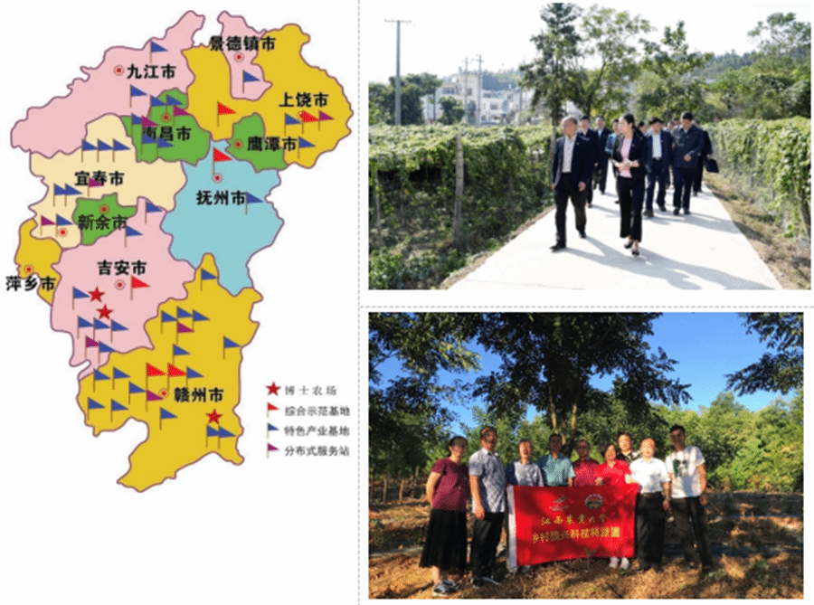 打造科技小院,助力乡村振兴。面向生猪、水稻、薯芋、蜜蜂、蜜柚、虾蟹等28个乡村特色产业发展需求,先后组建30个科技小院,实现了全省11个设区市全覆盖,“一县一特”“一院一品”格局初步形成。打造了依托1个科技小院、进驻3位党员、联系若干位专家和研究生的“1+3+N”党建+科技小院服务模式。专家团队带领研究生常驻生产第一线,“零距离、零时差、零门槛、零费用”进行技术指导、技术培训,让科技成果从“象牙塔”走进“泥土地”,科技小院成为集科学研究、人才培养、成果转化于一体的产学研深度融合平台。2022年,科技小院建设模式写入省委一号文件,并入选教育部和科技部“研究生培养方案”,纳入农业农村部和江西省人民政府共建“全国绿色有机农产品试点省实施方案”。