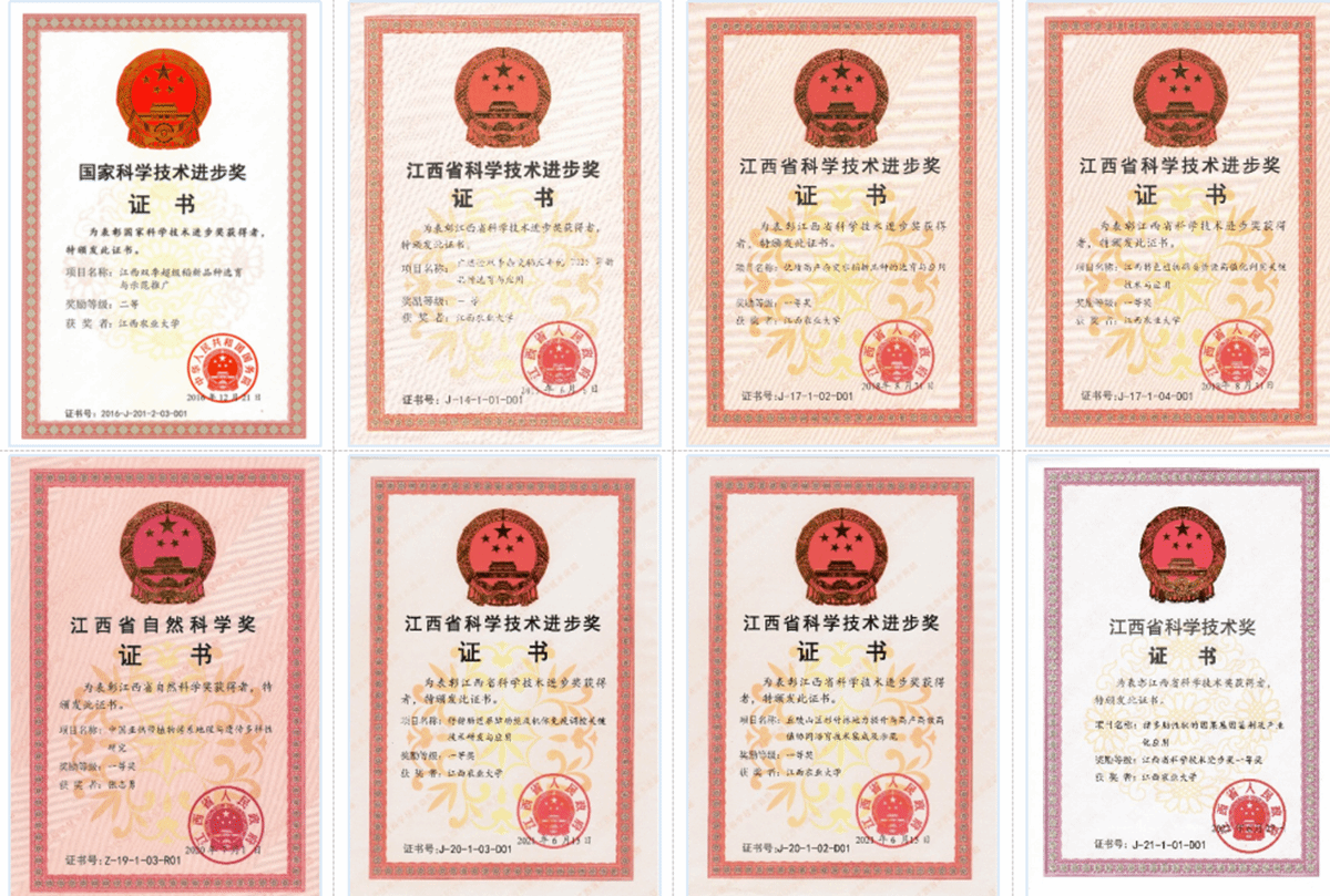 技术研发取得重大突破,关键核心技术达到领先水平。长期以来,黄路生院士团队聚力攻克猪遗传改良和种源“卡脖子”核心技术,鉴别的家猪主要经济性状因果基因突变占全球1/3,在国际上率先创建了多肋、体长、肉色、系水力、优质猪肉等多项专利技术,牵头创制的家猪育种芯片“中芯1号”各项性能处于世界领先水平并成为华系种猪育种主流技术,该成果入选为2021年江西省十大亮点科技成果。十年来,江农人奔走于实验室与田间地头“寻”良种、“觅”良法。累计选育水稻新品种70余个,其中国审品种8个、农业农村部认定的超级稻新品种5个,并研发了系列双季稻高产优质高效栽培技术。先后选育了果皮光滑型脐橙、毛花猕猴桃、厚壁毛竹、高产花生等特色植物新品种20余个;在生猪精准营养、林地地力提升、林业资源高效利用等领域关键技术研发相继取得突破。十年来,全校获得各级各类科研成果奖励100余项,其中作为牵头单位获国家科技进步奖二等奖1项,江西省科学技术奖一等奖7项。