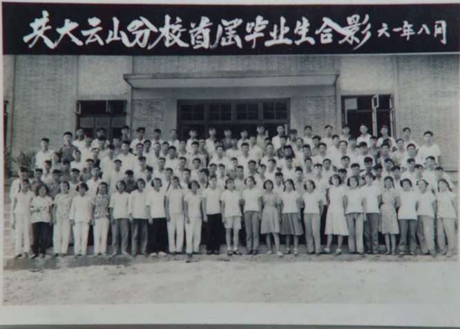 共大云山分校创办初期,条件非常艰苦,一无所有。面对困难,师生员工发扬自力更生、艰苦奋斗的革命传统,一面学习,一面劳动,一面劳动建校。没有校舍,自己动手搭窑烧砖、瓦、石灰,用自己烧制的70多万口砖建起了3000多平方米砖木结构的教学大楼,在当时是非常了不起的成就。经过几年的劳动建校,共大云山分校开垦了1700亩荒地,兴建了2万多平方米的校舍,生产了900余万元的产值,很快做到了自给自足。当年,江西省省长邵式平同志为云山垦殖场和云山分校填了一首《浪淘沙》词:“云山万丈高,春烟束腰,襟带龙凤千里飘。风景独数这边好,物华丰饶。建国要勤劳,集体英豪,同心同德论略韬。意气风发脱颖出,请看今朝。”赞扬共大云山分校的干部和师生们。