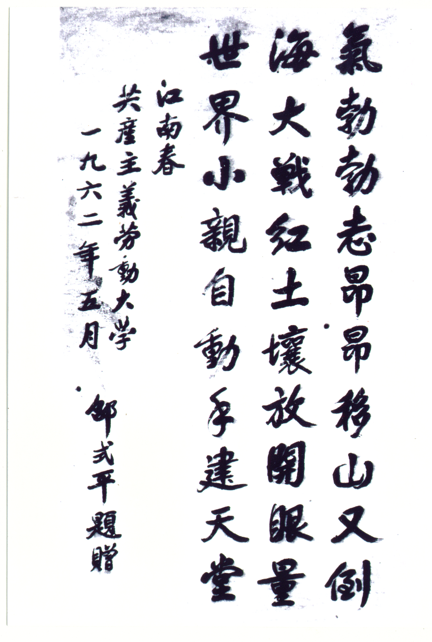 编者手记:这个故事在共大师生中流传甚远,一方面缅怀邵省长的敬仰之情,另一方面也称赞共大师生坚定并保持“半工半读”“不要国家一文钱”的艰苦奋斗精神。共大师生始终坚持不叫苦,自力更生;始终坚持听党的话跟党走;始终坚持永远胸怀建功于新中国的乐观信念、坚定信念与必胜信念。