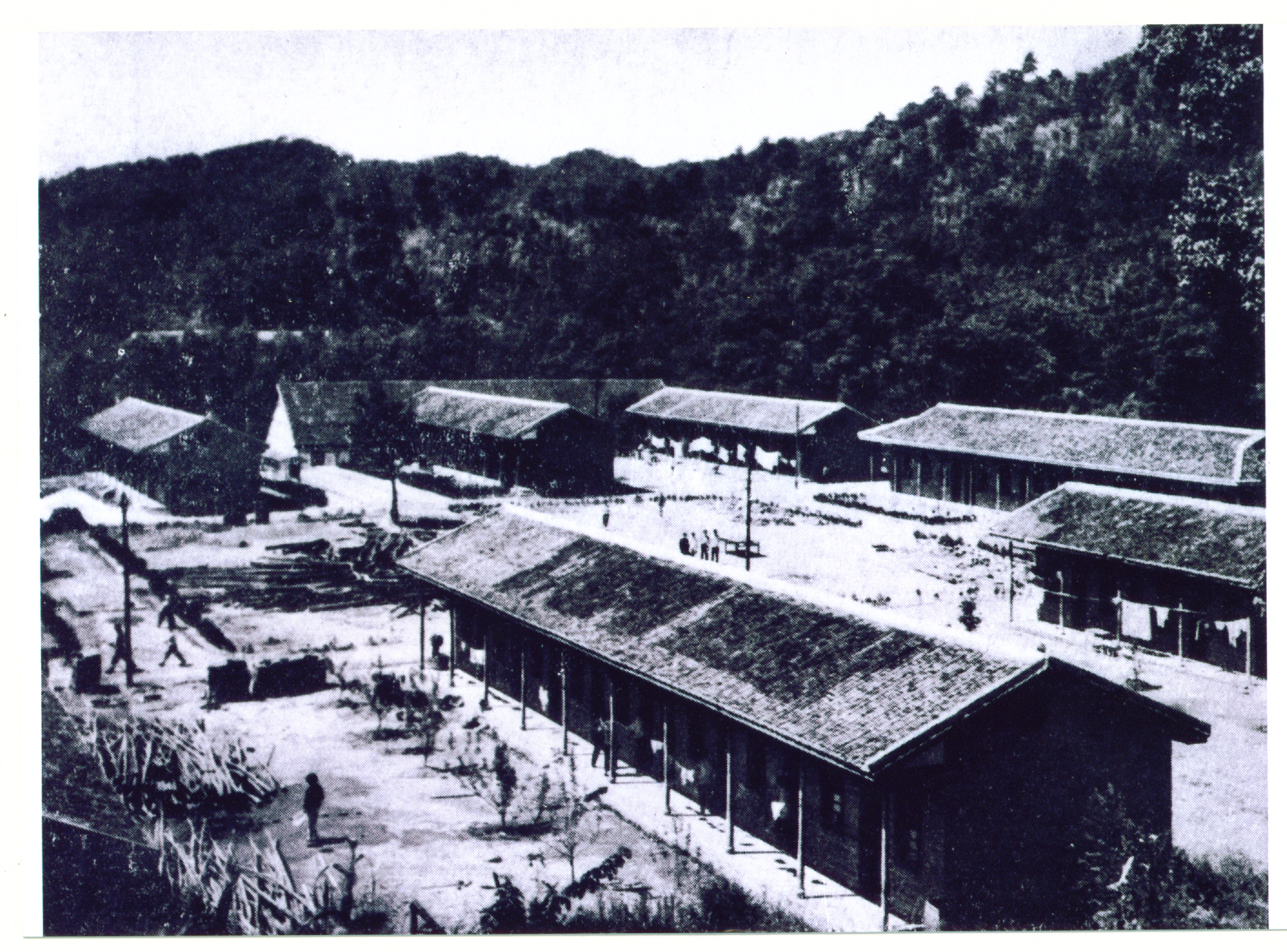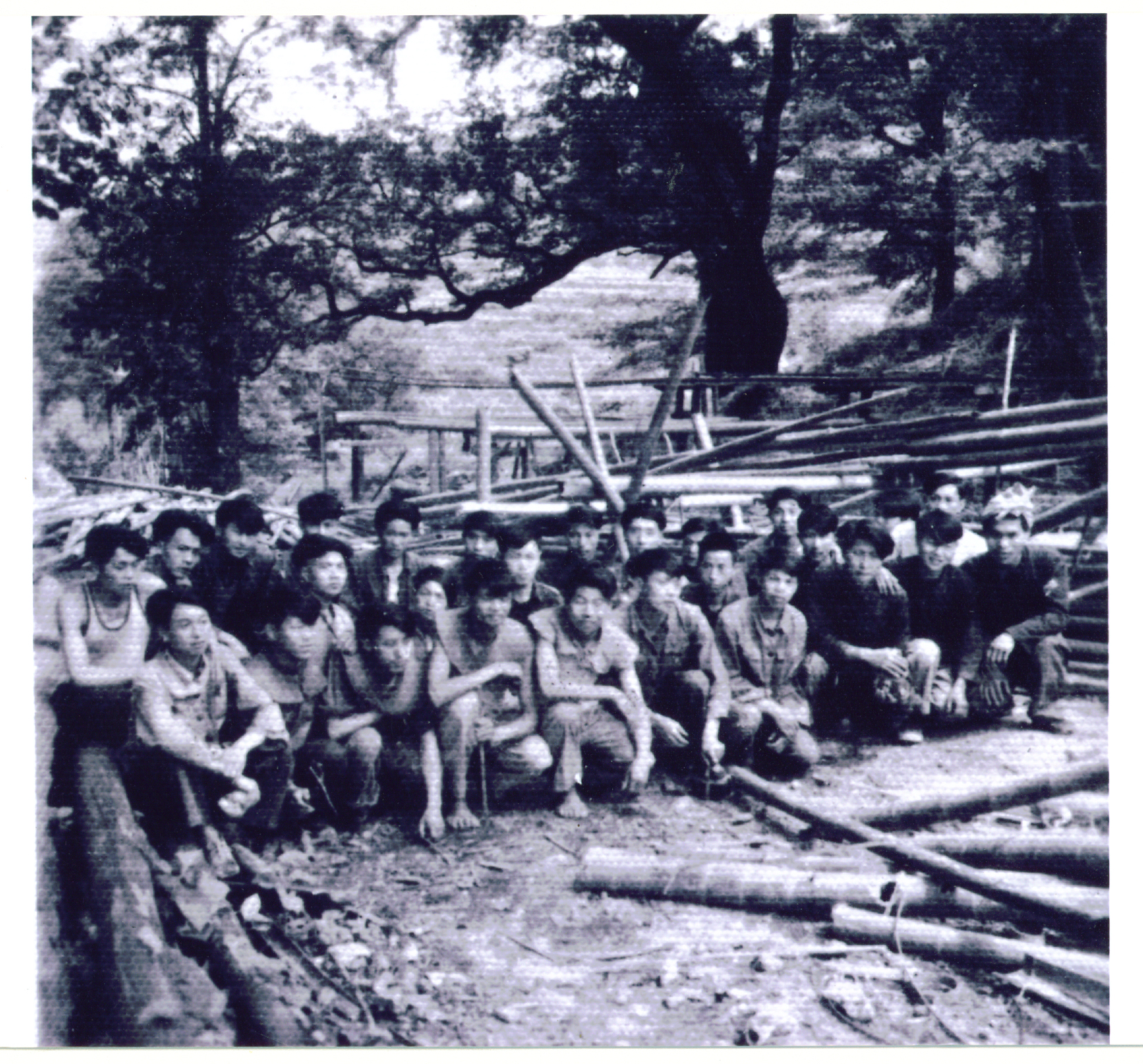 1958年10月共大总校建校才两个月,一场“自力更生建校园”的大决战就开始了。副校长黎超亲自带领总校1200余名师生,奔赴奉新、宜丰两县交界的大港山砍伐毛竹。师生进驻毛竹作业场地后,分班级借住在当地群众简陋的住房中,或住在自己临时搭盖的棚屋里。他们用毛竹搭起床架架起通铺,铺上一层稻草,就是大家睡觉的“安乐窝”。学生、老师、干部同吃、同住、同劳动。劳动条件十分艰苦。