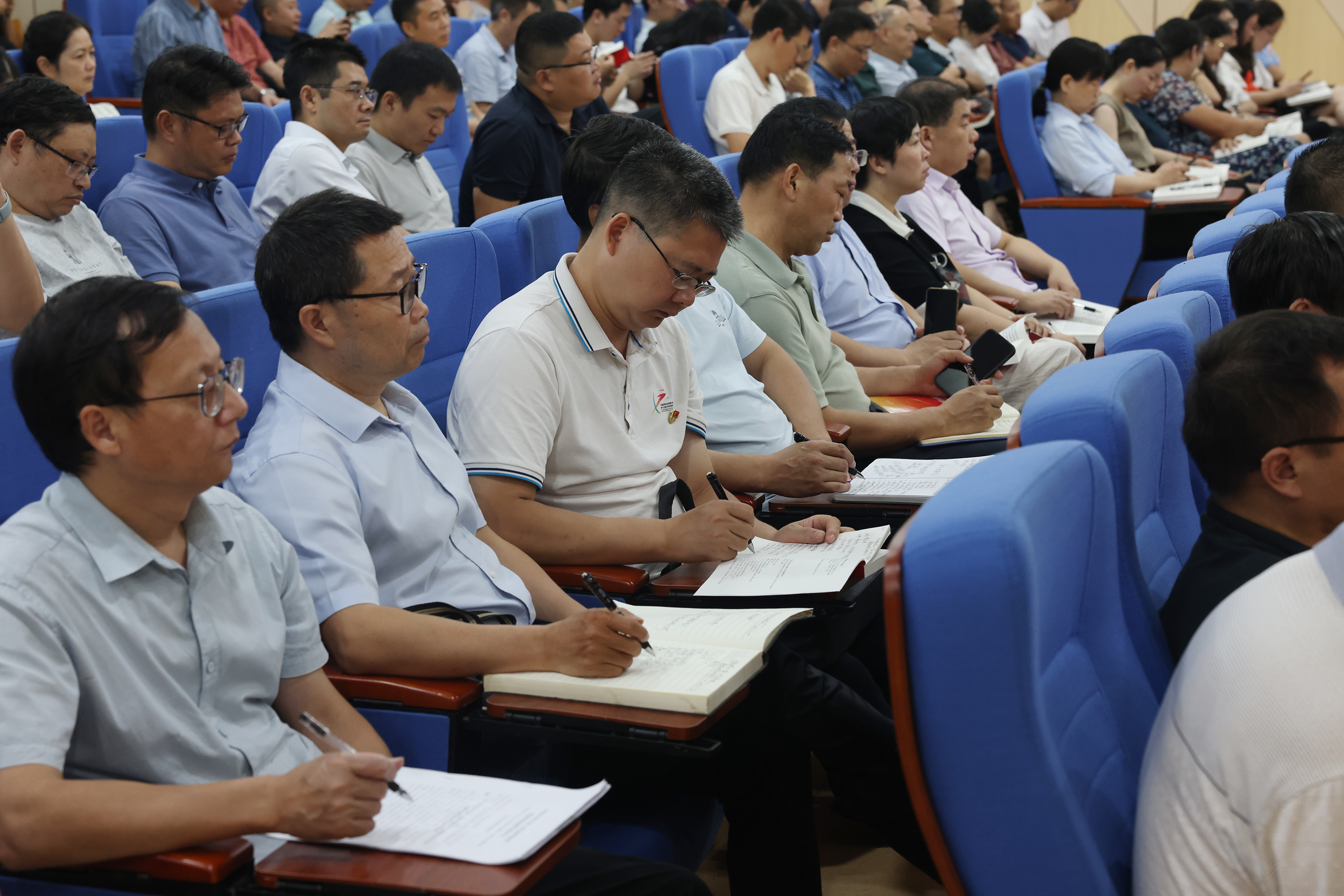 8月15日上午,学校举办学习贯彻党的二十届三中全会精神省委宣讲团宣讲报告会,省委宣讲团成员、校党委书记黄路生院士作宣讲报告,校领导,副处级以上领导干部,附属单位主要负责人,各学院辅导员、思政课教师、离退休老同志及在校大学生代表近200人现场聆听。副校长樊后保主持报告会。