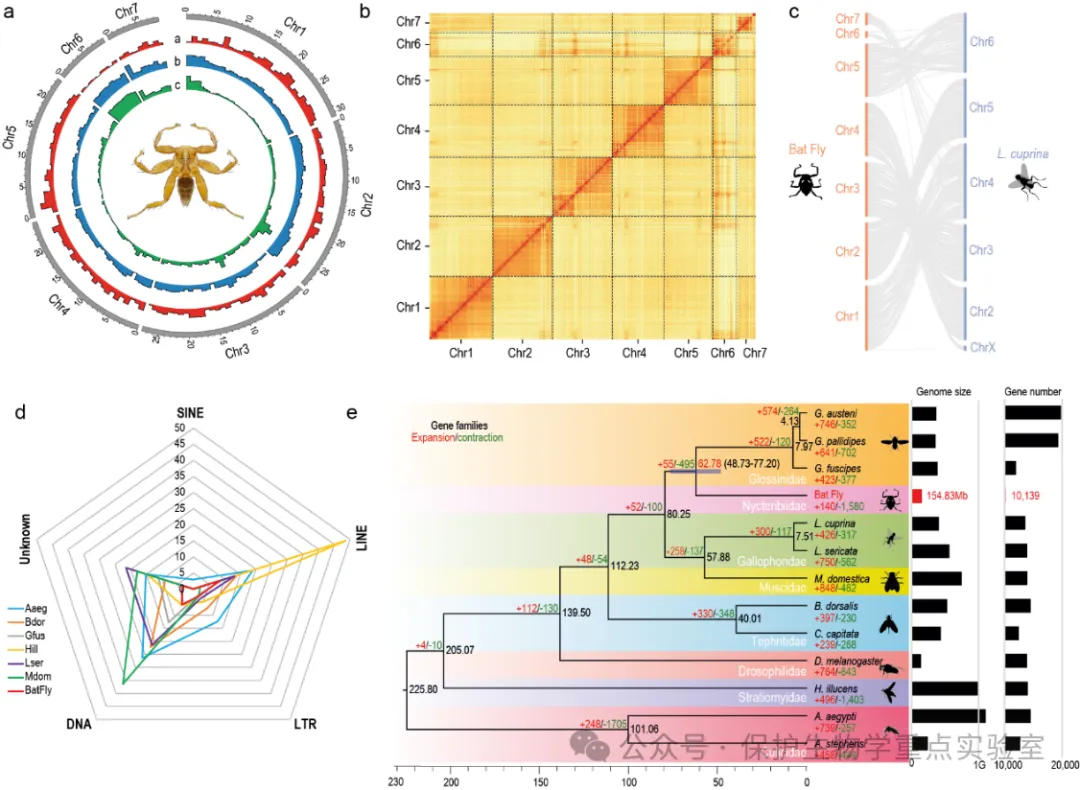 为解决上述问题,魏辅文院士团队和李杨团队合作对一种蝠蝇物种Phthiridium sp.的基因组进行从头组装,构建了其染色体水平的基因组,并通过比较基因组学分析,揭示了与适应寄生生活相关的性状基因;利用小RNA测序,研究发现蝠蝇中存在已知和新分类的病毒;此外,实验结果表明蝠蝇不仅能吸食蝙蝠的血液,还能吸食其他哺乳动物的血液,暗示蝙蝠携带的病毒有可能通过蝠蝇传播到其他宿主。