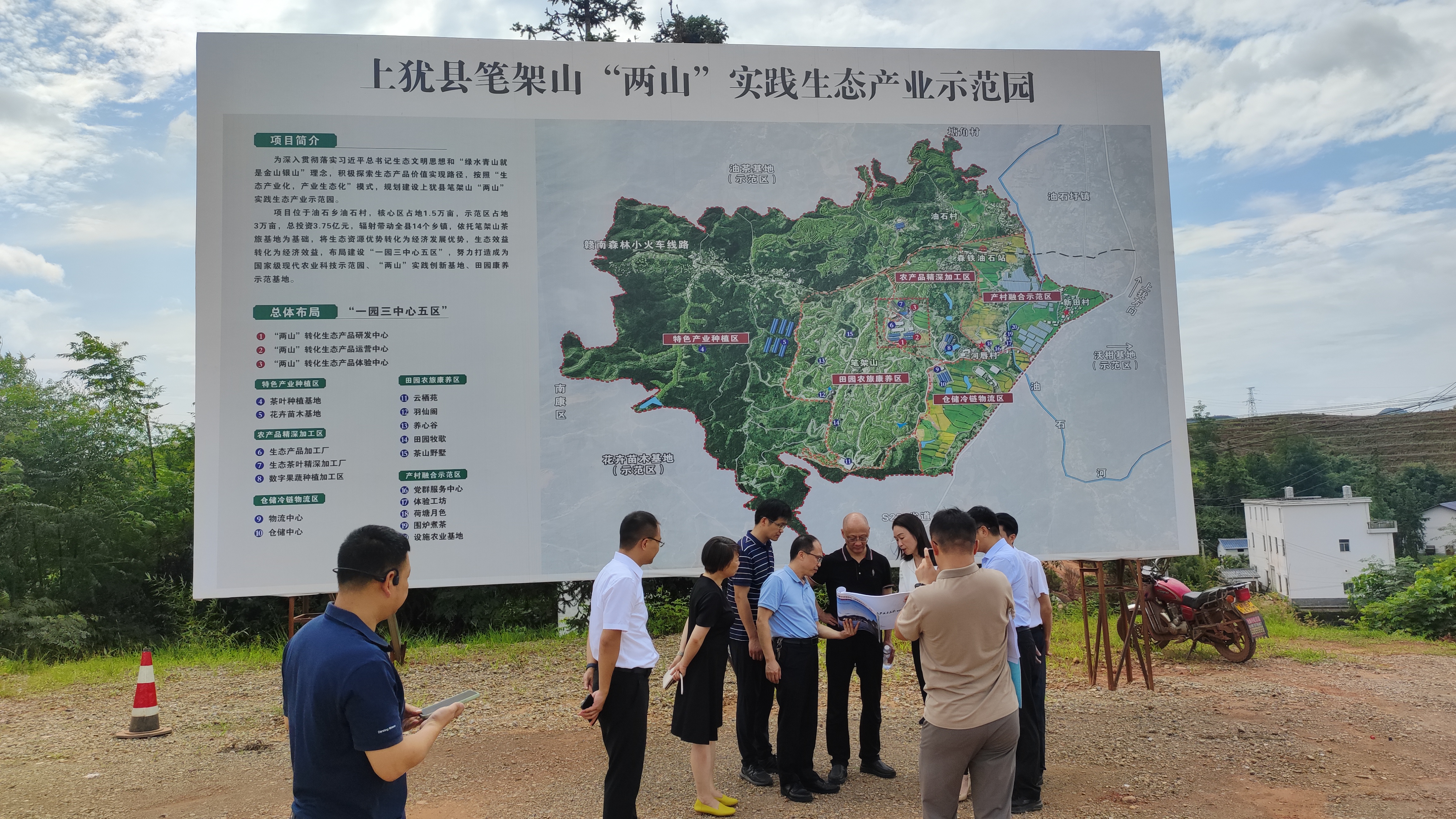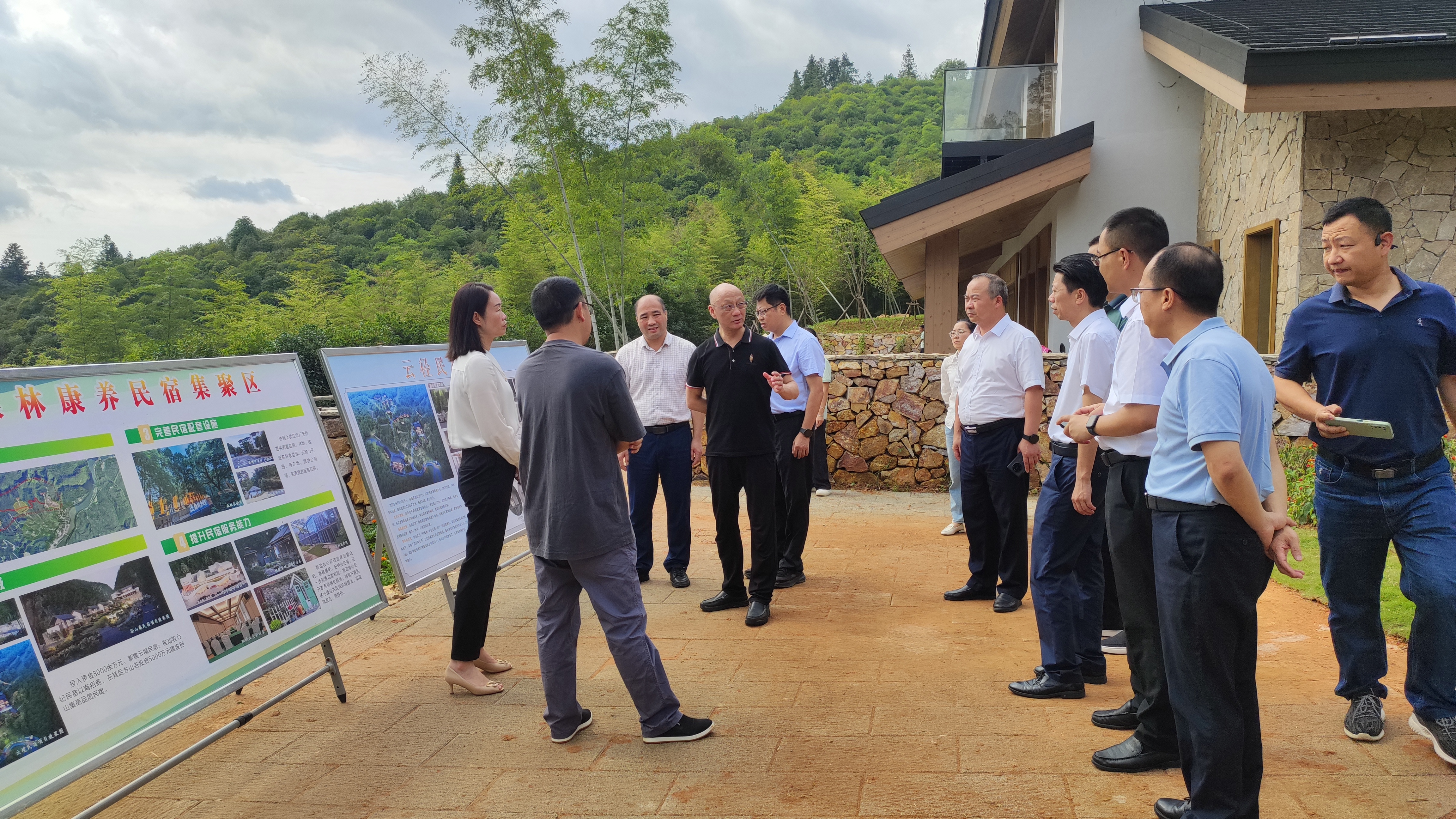 协议签订后,黄路生一行在上犹县委书记刘洪梅等县领导陪同下来到陡水镇揽山民宿、油石笔架山“两山”实践生态产业示范园等地展开实地调研,详细了解了民宿的经营状况、设计理念以及未来的发展规划。