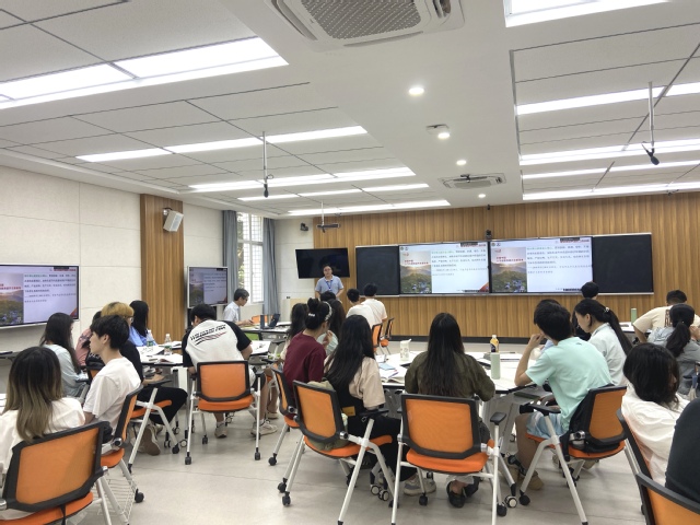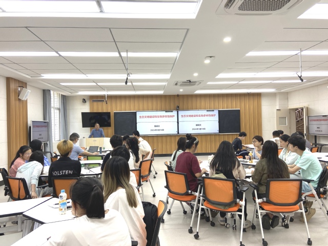 魏辅文以生态文明建设和生物多样性保护为题,围绕习近平生态文明思想的主要内容、建设生态文明和开展生物多样性保护的重大意义及推进举措、我国生态文明建设的国际合作等方面进行系统讲授,并介绍了学校在服务国家及我省重大发展战略、生态文明建设、生物多样性保护等方面工作的思路举措及取得的初步成效。魏辅文的授课具有国际视野,内容丰富、案例鲜活,拓宽了同学的眼界,激发了大家学好专业、挺膺担当的热情与自信。