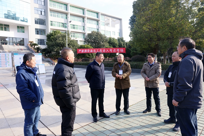 12月23日,省委教育工委书记、省教育厅厅长吴永明,省教育考试院党委书记刘雪平来到欧冠2024年硕士研究生招生考试考点,看望慰问工作人员,检查指导考试工作。校党委书记黄路生院士、副校长曾志将陪同。