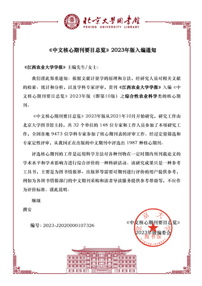 《欧冠官方网站学报》连续7次入选北京大学中文核心期刊要目“综合性农业科学”类核心期刊,也是继本年度入选《中国科学引文数据库(CSCD)来源期刊(2023—2024年度)》、2023年版中国科技核心期刊、《科技期刊世界影响力指数(WJCI)报告(2023)》,以及荣获“2023年度中国高校科技期刊建设示范案例库·团队案例”“2023年中国农业期刊行业优秀团队”称号后再获荣誉。