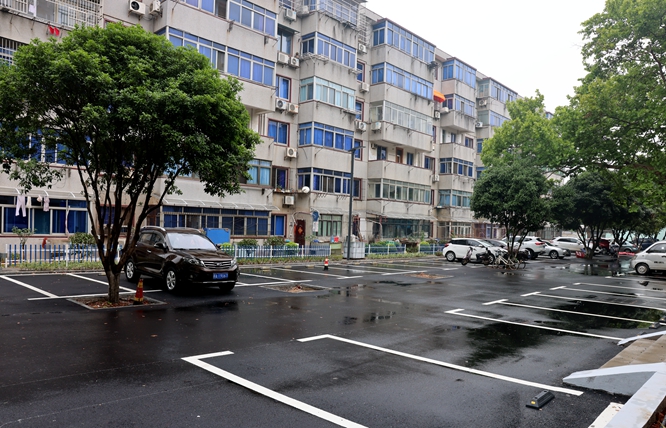 经过3个月的改造升级,金桂苑东片区完成了从无序到有序的美丽蝶变,共改造建筑面积2万多平方米、道路7000多平方米,新增停车位228个、休闲座椅56个,新种苗木180余株。一个立体共享、舒适蓬勃的全新社区呈现在师生眼前:楼栋墙面粉刷洁净,楼间景观错落有致,地上地下管网改造一体化。